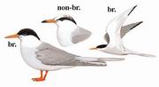 描述:中等体型(40厘米)、头顶黑色的燕鸥。嘴大,黄色,腿红或橘黄色,尾深叉而形长。上体、腰及尾深灰,外侧尾羽白,翼尖近黑。越冬成鸟嘴端黑色,额及头顶偏白。幼鸟同冬季成鸟,但头顶及上体褐色,胸两侧沾灰。似黑腹燕鸥,但体型大许多,且下体白色。