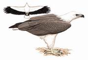 描述:体大(70厘米)的白、灰及黑色海雕雕。成鸟:头、颈及下体白色,两翼、背及尾灰色,初级飞羽黑色。亚成鸟:浅褐色取代成鸟的白色,深褐取代灰色。楔形尾成其特征。