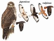描述:体型略大(55厘米)的红褐色鵟。上体深红褐色;脸侧皮黄具近红色细纹,栗色的髭纹显著;下体偏白上具棕色纵纹,两胁及大腿沾棕色。飞行时两翼宽而圆,初级飞羽基部具特征性白色块斑。尾近端处常具黑色横纹。在高空翱翔时两翼略呈"V"形。