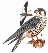 描述:体小(31厘米)的灰色隼。腿、腹部及臀棕色。似红脚隼但飞行时白色的翼下覆羽为其特征。雌鸟:额白,头顶灰色具黑色纵纹;背及尾灰,尾具黑色横斑;喉白,眼下具偏黑色线条;下体乳白,胸具醒目的黑色纵纹,腹部具黑色横斑;翼下白色并具黑色点斑及横斑。亚成鸟似雌鸟但下体斑纹为棕褐色而非黑色。