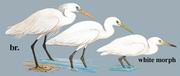 描述:中等体型(68厘米)的白色鹭。腿偏绿色,嘴黑而下颚基部黄色。冬季与白鹭区别在体型略大,腿色不同;与岩鹭的浅色型的区别在腿较长,嘴色较暗。成繁殖羽时嘴黄色,腿黑色。繁殖期脸部裸露皮肤蓝色。