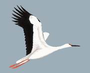描述:体大(105厘米)的纯白色鹳。两翼和厚直的嘴黑色,腿红,眼周裸露皮肤粉红。飞行时黑色初级飞羽及次级飞羽与纯白色体羽成强烈对比。与白鹳的区别在嘴黑色而非偏红。亚成鸟污黄白色。
