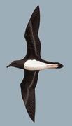 描述:体型略小(39厘米)的黑白色鹱。腹部白色,头及胸全暗色,楔形尾黑色。
