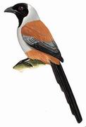 描述:体型显小(38厘米)的树雀。黑色的尾甚长,上背、背、下腹及尾覆羽棕色。黑色的脸与灰色颈背及上胸成对比。与棕腹树鹊的区别在额、耳羽、喉及尾黑色,腰赤褐色。与灰树鹊的区别在腰赤褐色,翼上无白色点斑,尾近端处无浅色带。