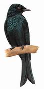 描述:体小(23厘米)的黑色而具绿色辉光的卷尾。与黑卷尾的区别在体型较小,体羽多光泽,尾略开叉,习性及栖息生境也不同;与鸦嘴卷尾的区别在尾较短;与乌鹃的区别在尾下缺少白色横斑。