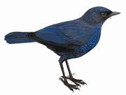 描述:体型略小(28厘米)的啸鸫。通体黑蓝,上体无金属闪辉羽片,胸具蓝色闪辉羽片。