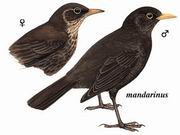 描述:体型略大(29厘米)的全深色鸫。雄鸟全黑色,嘴橘黄,眼圈略浅,脚黑。雌鸟上体黑褐,下体深褐,嘴暗绿黄色至黑色。此鸟与所熟悉的乌鸫为同一种类。与灰翅鸫的区别在翼全深色。