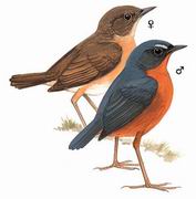 描述:体小(13厘米)的短翅鸫。特征为上体蓝灰,下体深铁锈色。细小的眉纹白色(部分被掩盖),眼先黑色。雌鸟:上体橄榄褐色,下体浅铁锈色,腹中心白色。