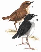 描述:体甚小(13厘米)而腿长的短翅鸫(外形似画眉)。具模糊的浅色半隐蔽眉纹,眼圈皮黄,嘴厚,尾较蓝短翅鸫为短。指名亚种雄鸟:上体青石蓝色,胸带及两胁蓝灰,喉及腹中心白色。雌鸟:上体红褐,胸及两胁沾红褐而具鳞状纹,喉及腹部白色。缺少蓝短翅鸫橙褐色的额及眼先。亚种carolinae的雄鸟:无蓝色,上体棕褐或橄榄褐,喉及腹中心白色,胸及两胁沾皮黄,上胸具白色杂斑。雌鸟似雄鸟但多棕褐色。亚成鸟具细纹及点斑。